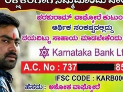 फेसबुक पर शेयर किए गए पोस्टर में परशुराम वाघमोरे की एक तस्वीर भी लगी है और लिखा है, 'धर्म की रक्षा करने वाले की आर्थिक मदद को आगे आएं.' इस पोस्टर में बैंक अकाउंट की पूरी डिटेल भी दी गई है। जिसमें चंदे की राशि जमा करने के लिए अपील किया गया है।