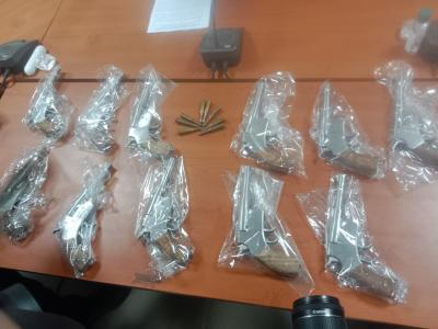 अवैध हथियारों के संबंध में पुलिस द्वारा पूछताछ की जा रही है।