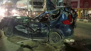 Hapur Road Accident: हापुड़ जिले के गढ़मुक्तेश्वर थाना क्षेत्र में एक कार के ट्रक से टकरा जाने से हुई दुर्घटना में छह लोगों की मौत हो गई। पुलिस ने मंगलवार सुबह बताया कि घटना में एक व्यक्ति गंभीर रूप से घायल हो गया। पुलिस के मुताबिक, हादसा सोमवार देर रात ब्रजघाट टोल के पास हुआ जब चालक ने कार पर से नियंत्रण खो दिया। इसके बाद तेज रफ्तार कार एक ट्रक से टकरा गई। पुलिस ने बताया कि गंभीर रूप से घायल व्यक्ति को इलाज के लिए मेरठ रेफर किया गया है।