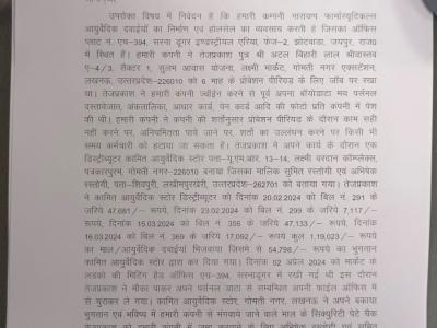 नारायण फार्मास्युटिकल्स, जो जयपुर, राजस्थान में आयुर्वेदिक दवाओं के निर्माण और होलसेल का कार्य करती है, ने जयपुर करधनी पुलिस थाने में दर्ज की गई रिपोर्ट में बताया कि तेजप्रकाश ने फरवरी और मार्च 2024 के दौरान लखनऊ में विभिन्न आयुर्वेदिक स्टोर्स को माल वितरित किया और उनसे प्राप्त हुए भुगतान चेकों को अपने परिवार जनों नाम पर फर्जी तरीके से , कूटरचित करके इस्तेमाल किया। इन चेकों को बैंकों ने अस्वीकार कर दिया, जिससे कंपनी को भारी आर्थिक और प्रतिष्ठा का नुकसान हुआ