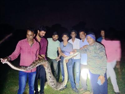 इस पर रेस्क्यू दल में एक्सपर्ट दीपक शेर एवं वन विभाग की टीम रात में स्थल पर पहुंची थी। मंदिर से करीब 50 मीटर दूर अजगर बकरी का बच्चा निगल कर झाड़ियों में बैठा हुआ था। इस पर ग्रामीणों को समझाया गया कि अजगर यहां से जंगल में चला जाएगा। ग्रामीणों के आक्रोश की स्थिति को देखते हुए अजगर का रेस्क्यू किया गया।