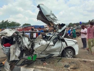 अधिकारी ने बताया कि यह हादसा धुले जिले में मुंबई-आगरा राजमार्ग पर पलासनेर गांव के समीप पूर्वाह्न करीब 10 बजकर 45 मिनट पर हुआ।