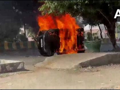 Massive stone pelting, arson and violence in Noida, UP. Car torched, police vans and private property vandalised. Situation is under control, says Noida administration. pic.twitter.com/0fpY6tg9C1