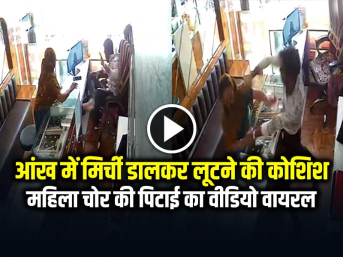 ठळक मुद्देज्वेलर्स व्यापारी की आंख में मिर्ची डालकर लूटने की कोशिश, महिला चोर की पिटाई का वीडियो वायरल