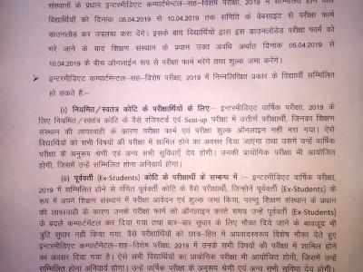 बारहवीं बोर्ड कम्पार्टमेंट, स्पेशल एग्जाम 2019 के नोटिफिकेशन बीएसईबी की वेबसाइट www.bsebinteredu.in पर जारी हो गई है।