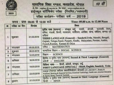 एमपी बोर्ड ने जारी किया 10वीं और 12वीं के टाइम टेबल