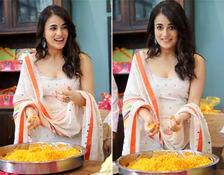 बॉलीवुड चुस्की : अंंग्रेजी मीडियम एक्ट्रेस राधिका मदान ने बनाए लड्डू, इंडियन लुक में देखें शानदार स्टाइल