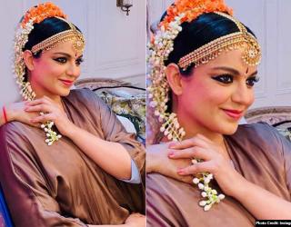 बॉलीवुड चुस्की : 'थलाइवी' के सेट से कंगना रनौत का लुक हुआ वायरल, देखें कंगना के ट्रेडिशनल अवतार की खूबसूरत तस्वीरें