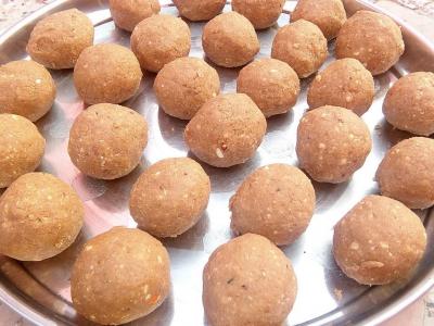 इसके बाद हाथ में घी लेकर इसके लड्डू बना लें