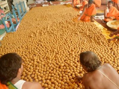 मंदिर से आते हुए भक्त यहां से प्रसाद के रूप में जो लड्डू घर ले जाते हैं। तिरुपति में जो लड्डू मिलते है उनको किशमिश, बेसन, काजू, चीनी, इलायची आदि अन्य चीजे डाल कर बनाया जाता हैं और आपको जानकार हैरानी होगी कि इस लड्डू को आप तीन महीनों तक खा सकते हैं। यह तीन महीने तक खराब नहीं होते। यहां के कुछ गिने हुए खास रसोइयों को इसको बनाने की जिम्मेदारी दी हुई है। ये सभी रसोइये लड्डूओं को मंदिर की गुप्त रसोई में तैयार करते है।
