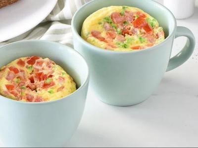एक कॉफी कप में दो अंडे, कटे हुए प्याज, टमाटर, धनिया और हरी मिर्च के साथ नमक और ब्लैक पेपर डालें। चाहें तो आप अपने स्वाद के अनुसार अन्य कोई भी सब्जी या मीट का कीमा भी इसमें डाल सकते हैं। कॉफी मग को अब चम्मच से चलाएं और सबको साथ मिला दें। अब इसे दो से तीन मिनट माइक्रोवेव करें। ओवन से बाहर निकालकर कॉफी मग में ही गर्मागर्म सर्व करें।
