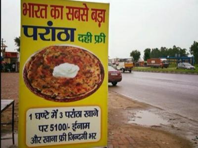 50 मिनट में खा लेंगे यहां का तीन पराठा तो जिंदगी भर खाना मिलेगा फ्री