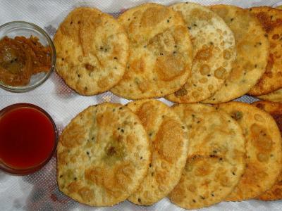 3. अब इनकी गोलियां बना लें और पूरी का आटा बनाकर उसमें मटर का भरावन भरें और गर्मागर्म तेल में पूरी बेल के डालें और सुनहरा होने तक तल लें।