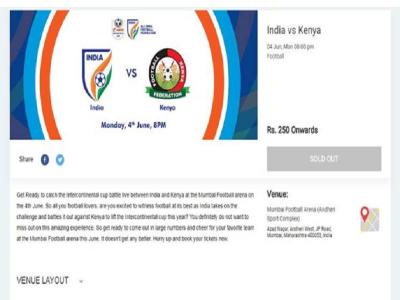 नई दिल्ली, 4 जून: भारतीय फुटबॉल टीम के कप्तान सुनील छेत्री की भावुक अपील के बाद इंटरकॉन्टिनेंटल में भारत और केन्या के बीच सोमवार को मुंबई में होने वाले मैच के सारे टिकट बिक गए हैं। सुनील ने दो दिन पहले हुए ट्विटर पर एक भावुक संदेश जारी करते हुए भारतीय फैंस को टीम को सपोर्ट करने की गुजारिश की थी। इसके बाद टीम इंडिया कप्तान विराट कहली और दिग्गज क्रिकेटर रहे सचिन तेंदुलकर भी सुनील के समर्थन में आए आए थे।