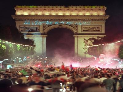 पेरिस के मशहूर स्मारक आर्क डे ट्रायोम्फे के पास रात में जनसैलाब उमड़ पड़ा जो 2006 के बाद पहली बार टीम के फाइनल में पहुंचने का जश्न मनाने आये थे। पेरिस के लोग चाहते थे कि हर कोई उनके साथ झूमे और जश्न में सराबोर हो जाये। घरों में टीवी के सामने नजरें गड़ाये बैठे दर्शक भी बालकनी में चले आये और सामूहिक जश्न की शुरूआत हो गई।