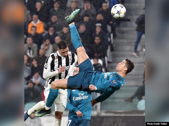 नई दिल्ली, 4 अप्रैल: रियाल मेड्रिड के स्टार फुटबॉल खिलाड़ी क्रिस्टियानो रोनाल्डो ने चैम्पियंस लीग में वैसे तो 100 से ज्यादा गोल कर चुके हैं लेकिन बुधवार को किया गया उनका एक बेहतरीन गोल चर्चा में आ गया है। रोनाल्डो का यह गोल इतना शानदार था कि पूरी में दुनिया में इसकी तारीफ हो रही है। रोनाल्डो ने यह गोल चैम्पियंस लीग के क्वॉर्टर फाइनल के पहले चरण में जुवेंटस के खिलाफ दागा।