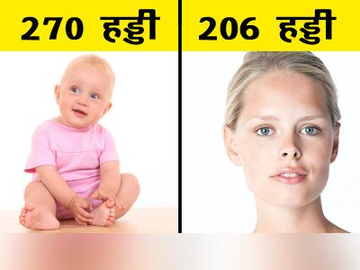आपको जानकार हैरानी होगी कि वयस्कों की तुलना में शिशुओं के शरीर में लगभग 64 हड्डियां ज्यादा होती हैं। नवजात शिशुओं के शरीर में लगभग 270 हड्डियां होती हैं जो उनके कंकाल को अधिक लचीला बनाती हैं। उम्र के साथ, उन हड्डियों में से कई एक साथ पिघल जाती हैं या जुड़ जाती हैं जिसके बाद 206 हड्डियां ही रह जाती हैं।
