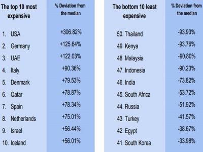 कपनी से 50 देशों देशों का आंकड़ा जारी किया है जिसमें हर देश में दवाओं की कीमतें शामिल की है। महंगी दवाई के मामले में दुनिया के पचास देशों देशों की लिस्ट में भारत 46वें स्थान पर है।