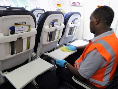 सीडीसी ने सिफारिश की है कि अगर विमान में यात्रा के दौरान या उसके बाद बीमारी के लक्षण वाले किसी व्यक्ति की पहचान नहीं होती है तो सीडीसी विमान को साफ करने, कचरे के निस्तारण और पीपीई पहनने के लिए नियमित संचालन प्रक्रिया का पालन किया जाए।