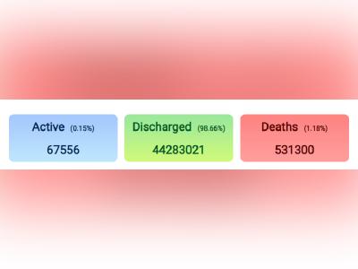 वायरस से ठीक होने वालों की संख्या बढ़कर 4,42,83,021 हो गई है, जबकि मृत्यु दर 1.18% है। इसके अलावा, वेबसाइट की रिपोर्ट है कि पूरे देश में व्यक्तियों को कोविड-रोधी टीकों की 220.66 करोड़ खुराक दी गई है।
