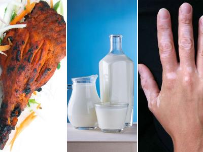ऐसा कहा जाता है कि चिकन के बाद दूध पीने से स्किन से जुड़ी समस्याएं भी हो सकती हैं। इस समस्या को विटिलिगो (vitiligo) कहा जाता है। इसमें स्किन पर सफेद धब्बे हो जाते हैं। हालांकि इस समस्या के लिए कोई ज्ञात कारण नहीं है। यहां तक कि इस धारणा को कोई वैज्ञानिक प्रमाण नहीं है। दूध और चिकन में विभिन्न प्रोटीन होते हैं। चिकन में शामिल प्रोटीन दूध में पाए जाने वाले प्रोटीन की तुलना में कहीं ज्यादा जटिल हो सकता है, और यहां तक कि उन लोगों के लिए भी जो लैक्टोज-टोलरेंट हैं, पाचन के दौरान इन दो प्रकार के प्रोटीन का मिश्रण उपयुक्त नहीं हो सकता है।