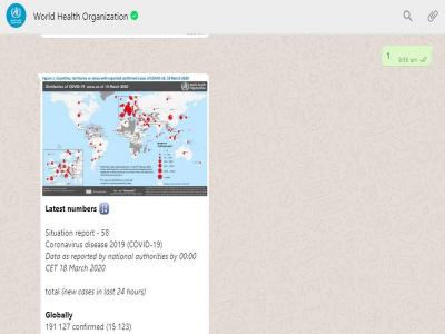 कोरोना वायरस से लोगों को बचाने के लिए सभी देश और संस्थाएं अपने-अपने स्तर पर प्रयास कर रहे हैं। इस बीच वर्ल्ड हेल्थ ऑर्गेनाइजेशन (WHO) ने कोरोना वायरस से जुड़ी हर तरह की जानकारी लोगों तक पहुंचाने का एक बेहद सरल तरीका निकाला है। अब आपको कोरोना वायरस के बारे में जानकारी लेने के लिए तमाम वेबसाइटों को खंगालने में समय बर्बाद नहीं करना पड़ेगा।