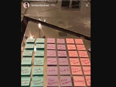नीले रंग के नोट पर लिखे नामों में उनके भाई रॉब कर्दशियां की पूर्व मंगेतर ब्लैक चाइना, बेट्टे मिडलर के साथ ही क्लोई मोरेट्ज और पियर्स मोर्गन का नाम भी शामिल है, दोनों ने 2016 में नग्न सेल्फी के लिए किम की आलोचना की थी। इसके अलावा गायिका पिंक, सारा मिशले गेलर, वेंडी विलियम्स के नाम भी शामिल हैं।