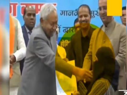 Bihar Hijab Controversy: बिहार के मुख्यमंत्री नीतीश कुमार का एक वीडियो सोशल मीडिया पर वायरल हो रहा है, जिसमें वे पटना में एक सरकारी कार्यक्रम के दौरान एक मुस्लिम महिला डॉक्टर का हिजाब हटाते नजर आ रहे हैं। ...