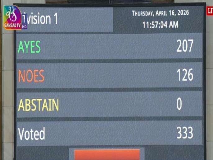 नई दिल्लीः संविधान संशोधन बिल पर मतदान हो गया और पक्ष में 251 और विपक्ष में 185 वोट पड़े। लोकसभा में प्रस्ताव पास और चर्चा शुरू हो गई। लोकसभा के सांसदों ने संविधान (131वां संशोधन) बिल, 2026 पेश करने के पक्ष में वोट दिया। लोकसभा में विपक्षी सदस्यों ने बिल पेश करने के कदम के खिलाफ मतविभाजन पर ज़ोर दिया था।लोकसभा में 207 सांसदों ने संविधान (एक सौ इकतीसवां संशोधन) विधेयक, 2026 को पेश करने के पक्ष में मतदान किया। वहीं 126 सदस्यों ने इसके विरोध में मतदान किया।