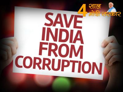चार सालों में केंद्र की नरेंद्र मोदी सरकार देश में भ्रष्टाचार नहीं रोक पाई है। विश्व भर में भ्रष्टाचार मापने वाले ग्लोबल करप्शन परसेप्शन इंडेक्स (सीपीआई) में साल दर साल भारत नीचे खिसकता जा रहा है। सीपीआई दुनिया के शीर्ष 180 देशों में भ्रष्टचार का सूचकांक जारी करता है। इसमें पहली रैंक पर रहने वाले देशों को भ्रष्टाचार मुक्त और नीचे बढ़ने के साथ दूसरे देशों में पहले कम भ्रष्ट, फिर अधिक भ्रष्ट और फिर बहुत भ्रष्ट, आखिर में एकदम भ्रष्ट की श्रेणी में रखा जाता है।