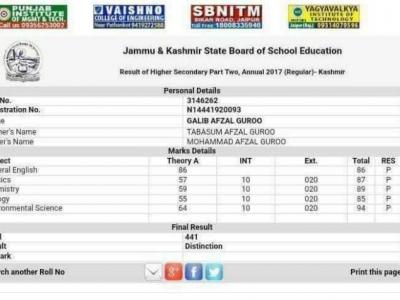 गालिब अफजल गुरु ने 10वीं की परीक्षा 95 प्रतिशत अंकों के साथ पास की थी।