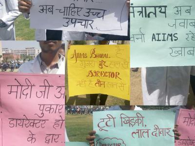6 साल पहले एम्स भोपाल में बीते तीन साल से स्थाई निदेशक नहीं है, जिसके चलते जरूरी तकनीक, बेहतर व्यवस्थाएं पूरी होने में दिक्कत आ रही है। स्थाई निदेशक की मांग के लिए तीन मेडिकल छात्र 5 जून को भोपाल से दिल्ली पैदल पुहंचेंगे।