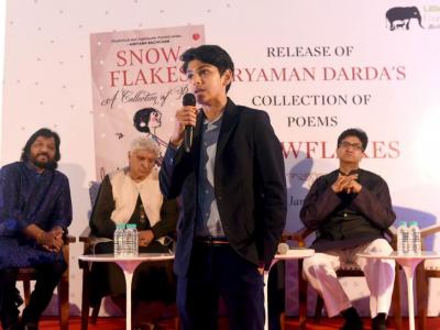 यह विचार व्यक्त किए प्रसिद्ध कवि और गीतकार जावेद अख्तर ने. शुक्रवार शाम वरली स्थित लोढा सुप्रीमस में आर्यमन दर्डा के पहले काव्य संग्रह 'स्नो फ्लेक्स' के विमोचन के अवसर पर वह बोल रहे थे. इस अवसर पर लोकमत समूह के एडिटोरियल बोर्ड चेयरमैन विजय दर्डा, प्रसिद्ध गायक रूपकुमार राठोड़, वरिष्ठ कवि व गीतकार प्रसून जोशी भी उपस्थित थे.