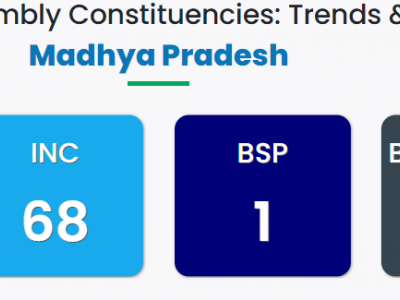 मध्य प्रदेश विधानसभा चुनाव से जुड़ी मतगणना जारी है, लेकिन भाजपा 105 सीट पर जीत दर्ज कर चुकी है और 59 सीट पर आगे है। कांग्रेस 34 सीट जीत चुकी है और 31 पर आगे है।