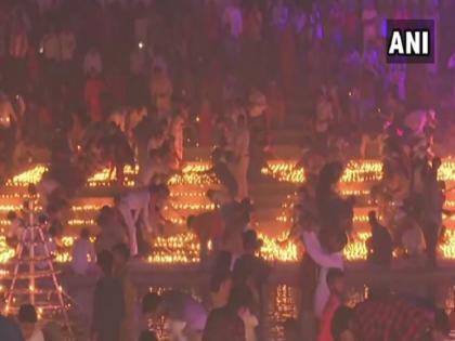 #WATCH 'Deepotsava' celebrations at Ram ki Paidi in #Ayodhya. Over 5.50 lakh earthen lamps have been lit in Ayodhya today as a part of #Diwali celebrations. pic.twitter.com/mJROkg8ZHQ