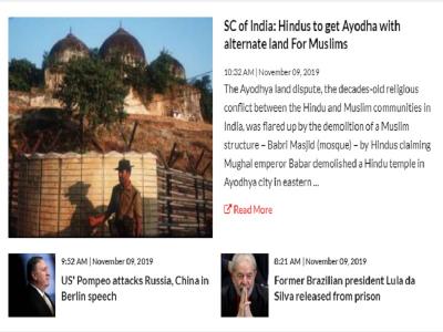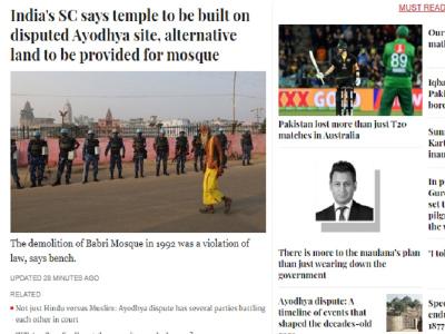 वहीं, पाकिस्तानी टीवी चैनल ने भी अपनी वेबसाइट पर एजेंसी के हवाले से खबर चलाई- 'भारत की सुप्रीम कोर्ट ने बाबरी मस्जिद की जमीन हिंदुओं को दी।'