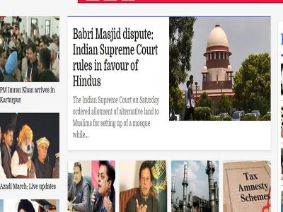 पाकिस्तान के डेली टाइम्स ने हालांकि खबर लिखे जाने तक अपनी वेबसाइट पर अयोध्या मसले को जगह नहीं दी थी। वहीं, द न्यूज ने लिखा- 'भारत के सुप्रीम कोर्ट ने हिंदुओं के पक्ष में फैसला दिया।'