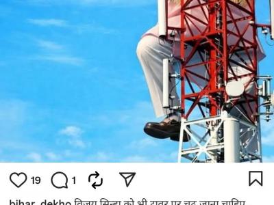पटनाः भाजपा के वरिष्ठ नेता एवं पूर्व उपमुख्यमंत्री विजय कुमार सिन्हा के द्वारा यह कहे जाने पर कि "कमांडर के आदेश" पर भाजपा विधानमंडल दल की बैठक में सम्राट चौधरी के नाम का प्रस्ताव उन्होंने रखा, सियासी गलियारे में चर्चा का विषय बन गया है। विजय सिन्हा इस बयान के बाद सोशल मीडिया में ट्रोल होने लगे हैं। सोशल मीडिया में लोगों ने लिखा है कि विजय सिन्हा को भी टावर पर चढ जाना चाहिए, जिस तरह बिहार में अभी ट्रेंड चल रहा है। कोई गर्लफ्रेंड के लिए चढ रहा है तो कोई बॉयफ्रेंड के लिए। उसी तर्ज पर विजय सिन्हा को भी कदम उठाना चाहिए।