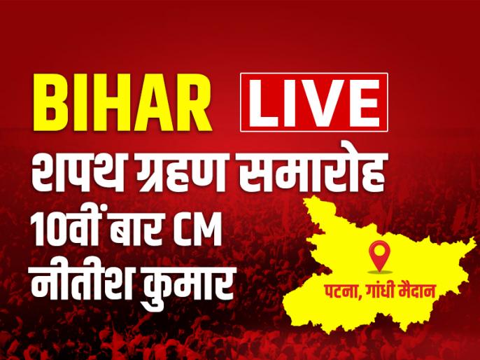 Bihar CM Oath Ceremony LIVE: नीतीश कुमार आज 20 नवंबर को दसवीं बार बिहार के मुख्यमंत्री के रूप में शपथ लेंगे। सूत्रों के अनुसार, कई केंद्रीय मंत्री और राजग शासित राज्यों के मुख्यमंत्री भी शपथ ग्रहण समारोह में मौजूद रहेंगे। कार्यक्रम को लेकर गांधी मैदान और उसके आसपास बड़ी संख्या में सुरक्षा बलों की तैनाती की गई है। प्रधानमंत्री नरेन्द्र मोदी, केंद्रीय गृह मंत्री अमित शाह और राष्ट्रीय जनतांत्रिक गठबंधन (राजग) के कई शीर्ष नेता बृहस्पतिवार को पटना के ऐतिहासिक गांधी मैदान में होने वाले जनता दल यूनाइटेड (जदयू) के प्रमुख नीतीश कुमार और उनके मंत्रिमंडल के शपथ ग्रहण समारोह में शामिल होंगे। आम जनता का प्रवेश 20 नवंबर तक पूरी तरह प्रतिबंधित कर दिया गया है। कार्यक्रम के मद्देनजर गांधी मैदान के आसपास के कई सड़कों पर यातायात के लिए मार्ग परिवर्तित भी किया गया है।