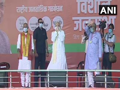 मोदी ने यहां एक चुनाव रैली को संबोधित करते हुए कहा, ‘‘ आज बिहार के सामने, डबल इंजन की सरकार है, तो दूसरी तरफ डबल-डबल युवराज भी हैं। उनमें से एक तो जंगलराज के युवराज भी हैं।’’ पीएम मोदी अपने भाषण दौरान के दौरान एक वायरल वीडियो का भी जिक्र किया। पढ़ें उनके भाषण की 10 बडी़ बातें