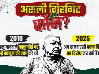 अब 2025 में राजद उसी बिल का विरोध कर रही है। इस पोस्टर को बिहार भाजपा के मीडिया प्रभारी दानिश इकबाल ने अपने एक्स अकाउंट पर भी शेयर किया था। वहीं, पटना में लगाए गए नए पोस्टर में लालू प्रसाद यादव की तस्वीर लगाकर पूछा गया है कि असली गिरगिट कौन? 2010 में लालू यादव वक्फ बोर्ड पर कड़े कानून की मांग की थी, अब 2025 में राजद उसी वक़्फ़ बिल का विरोध कर रही है!