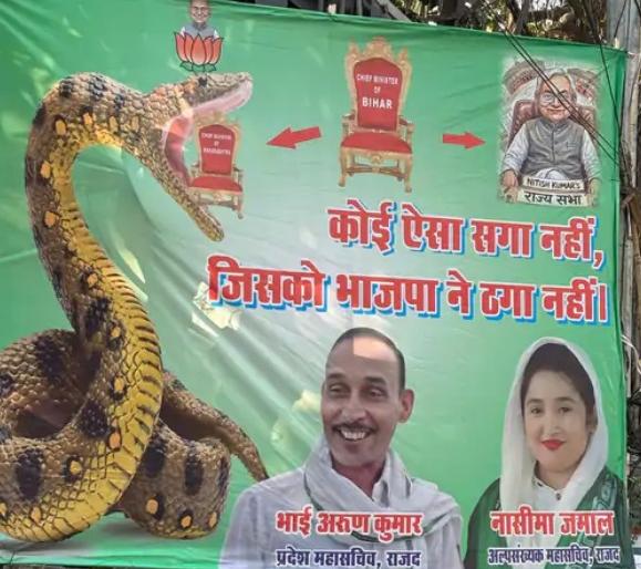 पटनाः बिहार में जारी सियासी गहमागहमी के बीच राजद ने भाजपा पर तंज कसते हुए आरोप लगाया है कि भाजपा अपने सहयोगी दलों को “अजगर की तरह निगलने” की राजनीति करती है। पार्टी का कहना है कि पिछले एक दशक में भाजपा ने उन राज्यों में भी सियासी विस्तार किया है, जहाँ उसे चुनाव में स्पष्ट बहुमत नहीं मिला था, लेकिन बाद में राजनीतिक समीकरण बदलकर सत्ता हासिल कर ली। पटना में राजद की ओर से इसे लेकर पोस्टर भी लगाया गया है जिसमें लिखा है 'ऐसा कोई सगा नहीं जिसको भाजपा ने ठगा नहीं'। दरअसल, 2014 के बाद कई राज्यों में ऐसे उदाहरण सामने आए, जहां चुनाव परिणामों के बाद सत्ता का समीकरण बदला और भाजपा सरकार बनाने में सफल रही। गोवा और मणिपुर में चुनाव के बाद भाजपा सबसे बड़ी पार्टी नहीं थी, लेकिन छोटे दलों और निर्दलीयों के समर्थन से उसने सरकार बना ली।