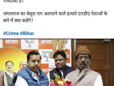 21 साल से सत्ता में बैठे नकारे निकम्मे डबल स्टैंडर्ड के डबल फेस्ड सरकारी गुंडे अपने निजी गुंडों का बचाव करने के लिए अतार्किक गुंडई भाषा का प्रयोग कर 21 साल के कुकर्मों को ढकने का प्रयास करते है। यही दोहरे चरित्र के सत्ताधारी गुंडे बिहार और बिहारी अस्मिता के सबसे बड़े दुश्मन है।