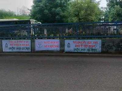 वहीं उप मुख्यमंत्री तेजस्वी यादव पर कटाक्ष करते हुए एक नारा है, ‘डिप्टी सीएम इतना तेजस्वी, पास न कर पाया वो दसवीं’। वहीं इंडिया गठबंधन पर भी हमला बोला गया है और नारे में लिखा है- ‘घमंडिया गठबंधन ना नीति, ना नीयत, ना नेता’। ‘परिवारवाद से बनाना दूरी है, फिर एक बार मोदी जरूरी है’।