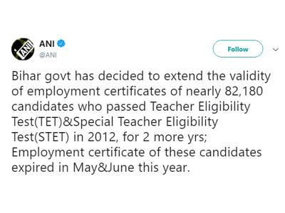बिहार सरकार ने TET और STET पास उम्मीदवारों के प्रमाणपत्र की वैधता बढ़ाई