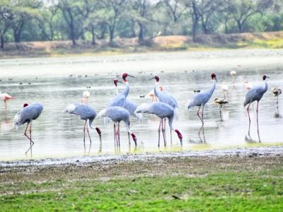 वैसे तो यहां 100 से अधिक प्रवासी पक्षी नवंबर से मार्च तक रहते हैं लेकिन जिनमें मुख्यतः डेमेसाइल क्रेन (कुरजां), पेलीकन (हवासील), ओस्प्रे( समुद्री बाज), फ्लेमिंगोज ( राजहंस), रेड किर्स्टेड पोचार्ड, बार हैडेड गूज, ग्रेलैग गूज आदि।