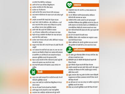 बीजेपी के संकल्प पत्र में लिखा है, 'विगत पांच वर्षों के शासन काल में प्रधानमंत्री मोदी के नेतृत्व में केंद्र सरकार ने प्रत्येक भारतीय की जिंदगी में सकारात्मक बदलाव लाए हैं। सरकार ने अपनी जवाबदेही को सुनिश्चित करते हुए लोकहित के कार्य किए हैं। पीएम मोदी ने अपने प्रतिबद्धता जाहिर करते हुए कहा है कि 2022 में जब भारत की आजादी के 75 साल पूरे होंगे तब हम सभी भारतवासियों के जीवन में परिवर्तन का संदेश लेकर जाएँगे।'