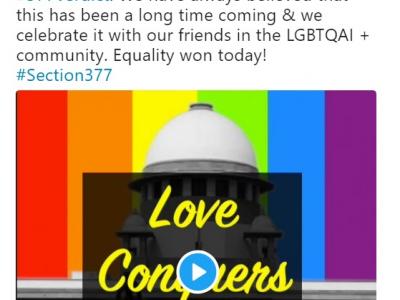सर्वोच्च अदालत का फैसला आते ही कई मशहूर हस्तियों ने सोशल मीडिया पर इसका स्वागत किया। समलैंगिकता को कानूनी मान्यता देने वाले इस फैसले पर समलैंगिकों के बाद सबसे ज्यादा ताली बॉलीवुड सेलेब्स ने बजायी। उसके बाद नम्बर बुद्धिजीवियों का आता है। राजनीतिक दलों में शायद सबसे पहले कांग्रेस ने इस फैसले का स्वागत किया।