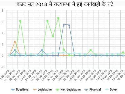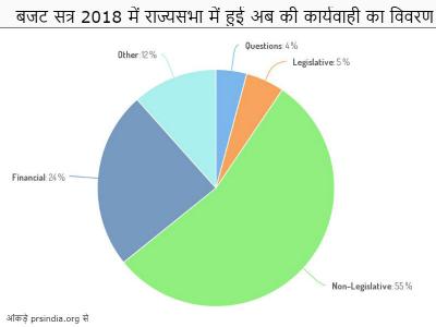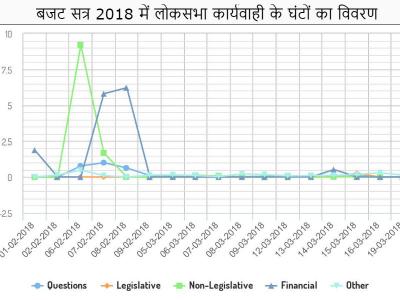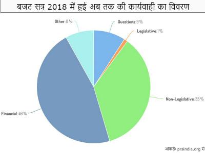 बजट सत्र 2018 पर एक गैर-लाभकारी समूह पीआरएस कुछ तथ्यात्मक जानकारियां रोजाना अपडेट कर रहा है। बजट सत्र में मुख्य रूप से प्रश्नकाल, विधायी कार्यवाही, गैर विधायी कार्यवाही, वित्तीय कार्यवाही होती है। लेकिन इसमें एक अन्य श्रेणी भी जोड़ दी जाती है, अन्य। इसके अंतरगत हंसी-ठिठोली व कई दूसरे तरह के कामकाज शामिल होते हैं। पीआरएस इस पर आकलन कर रहा है।