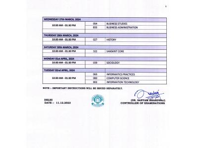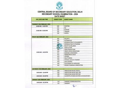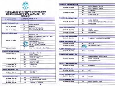 CBSE Board Exam datesheet 2024: केंद्रीय माध्यमिक शिक्षा बोर्ड (सीबीएसई) ने संशोधित सीबीएसई बोर्ड परीक्षा 2024 डेटशीट जारी की है। इससे पहले बोर्ड ने 12 दिसंबर 2023 को एक डेटशीट जारी की थी। छात्र सीबीएसई की आधिकारिक वेबसाइट सीबीएसई पर कक्षा 10 और 12 के लिए संशोधित समय सारिणी देख सकते हैं।